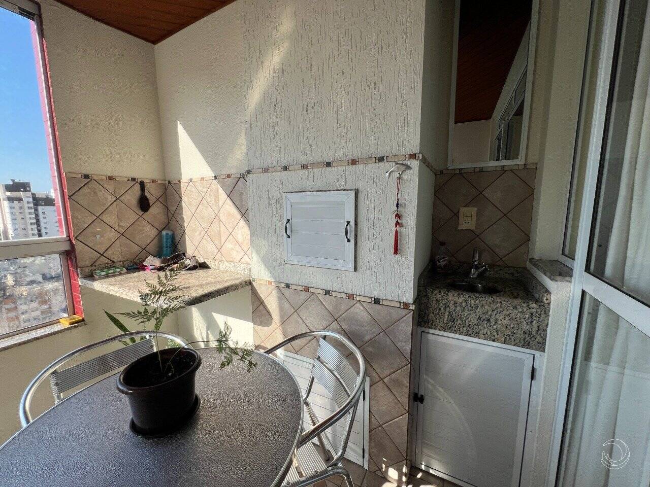 - Sacada com churrasqueira e vista parcial para o mar